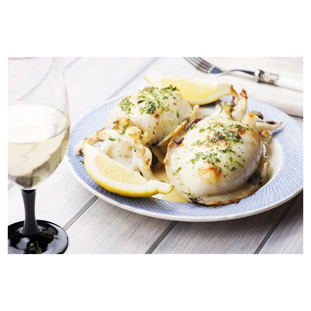 SEICHES entières nettoyées crues surgelées (Sepia officinalis pêché à la senne en FAO 57 , sel, acidifiant (citrate de sodium).