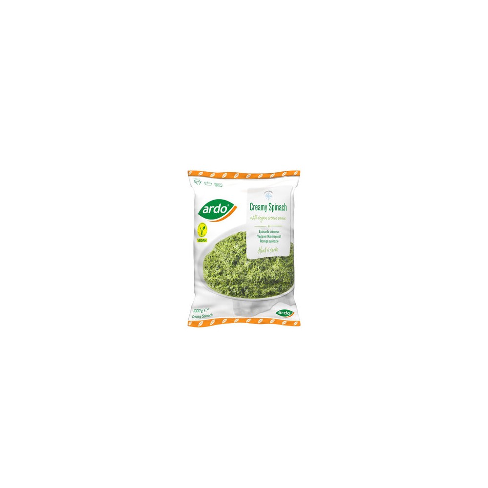 Épinards (84 %), eau, huile de colza (2,9 %), amidon de riz, sel, protéine de pois, sucre, épices : (noix de muscade, poivre blanc)